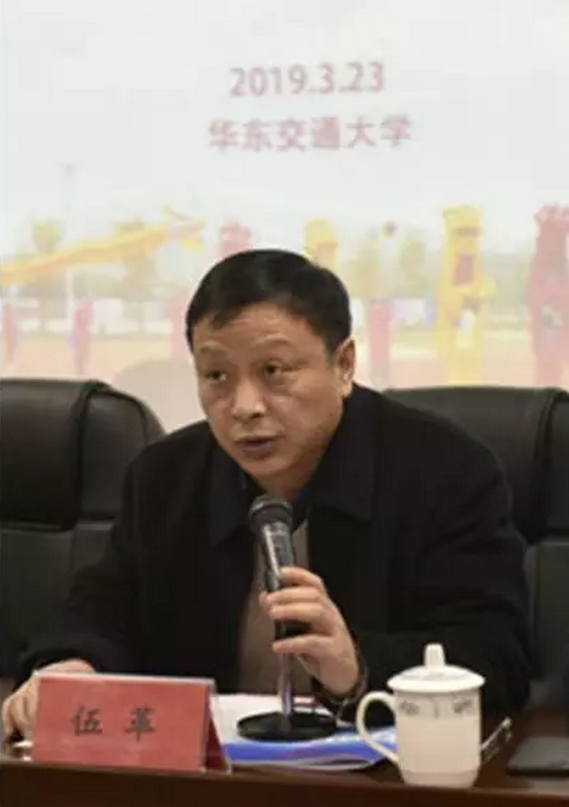 南昌市体育总会秘书长伍革宣读同意成立南昌市龙狮运动协会的批复文件
