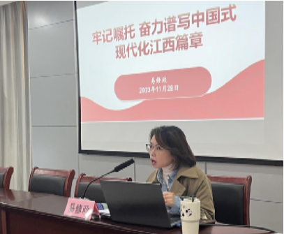 宣讲会上,易修政对习近平总书记考察江西重要讲话精神做了系统梳理和深入阐述,她提出,要充分认识习近平总书记再次考察江西的重大意义,全面理解习近平总书记对江西发展提出的新的战略定位,准确把握习近平总书记对江西发展提出的任务要求,以及进一步推动长江经济带高质量发展的重要要求,深刻把握贯彻落实习近平总书记考察江西重要讲话精神的实践要求。易修政还强调,要切实将习近平总书记考察江西重要讲话精神贯穿于彩票软件